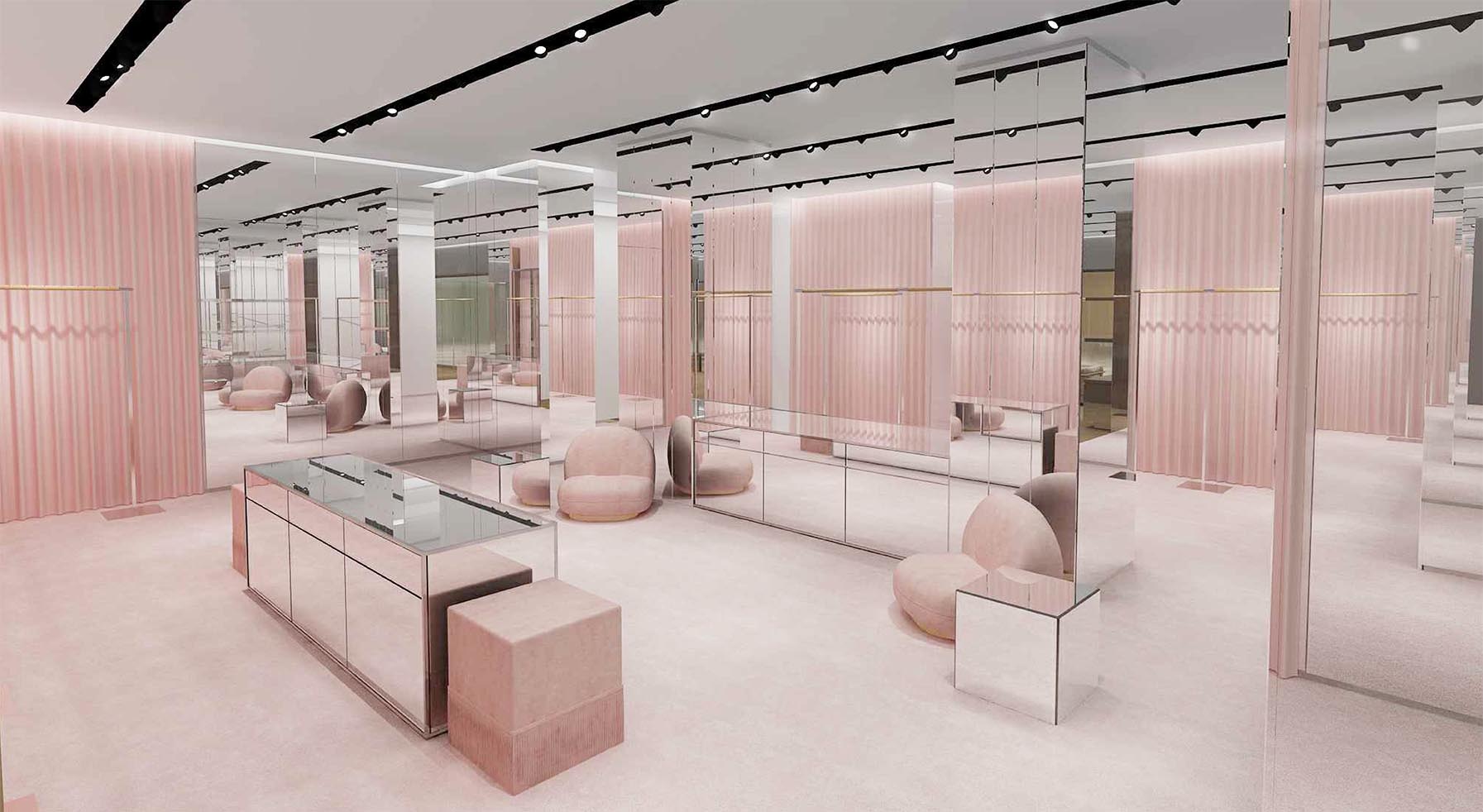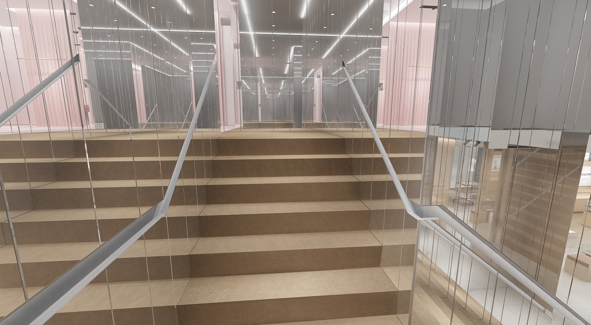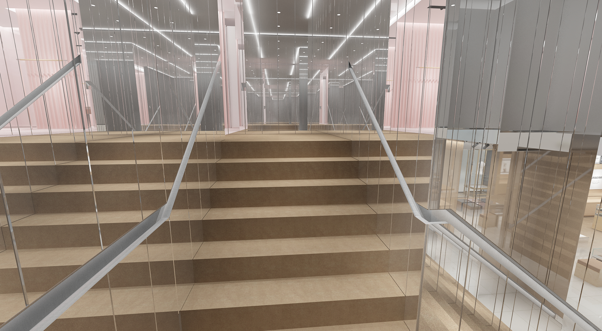 The main entry way and central display is conceptualized as an ever-changing gallery environment for which to display Burberry’s latest collections, with a standalone square-frame unit for merchandising.