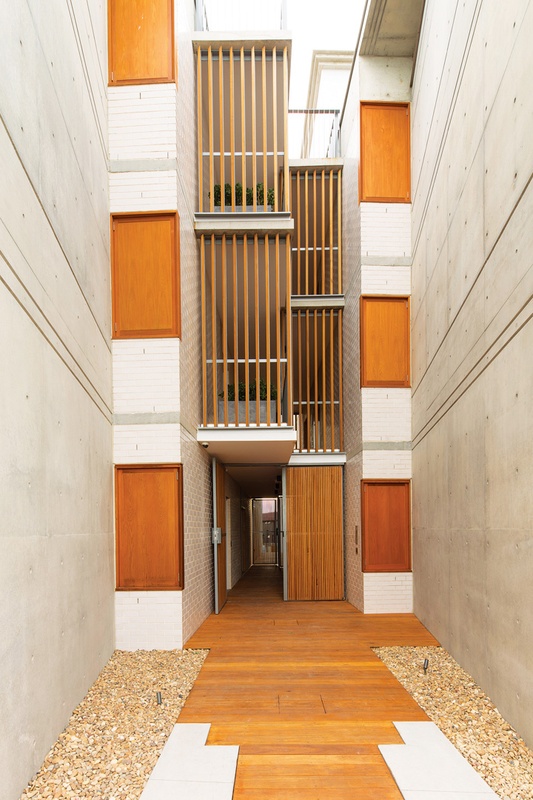 The bays lend a memorable quality to the interiors of the west-facing bedrooms, creating a contained space at the rear of the apartments that contrasts with the trumpeting geometry of the east-facing balconies.